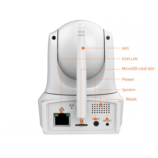 Τεχνικά Χαρακτηριστικά:Αισθητήρας: 2.0 MPixelΥψηλή ανάλυση FHD 1080PΕστιακό μήκος φακού: 3.6mmΑσύρματη σύνδεση μέσω WiFi (IEEE 802.11 b/g/n).Ενσύρματη σύνδεση με καλώδιο Ethernet (10/100 mbps).Επιλογή 3 τύπων ανάλυσης εικόνας: 720P(1280*720) / VGA(640×480) / QVGA(320×240).Νυχτερινή όραση έως 10 μέτρα σε απόλυτο σκοτάδι, με τη χρήση των ενσωματωμένων LED υπερύθρων (12IR Leds).Υποστηρίζει κάρτα Μνήμης Micro-SD μέχρι 64 GB (δεν περιλαμβάνεται)Αυτόματη αναγνώριση κίνησης.Ενσωματωμένο μικρόφωνοΕνσωματωμένο μεγάφωνοΔωρεάν εφαρμογές για iOS και Android (Eye4) για να παρακολουθείτε την κάμερα από το κινητό ή το tablet σας.Δωρεάν εφαρμογή για ταυτόχρονη καταγραφή/παρακολούθηση πολλών καμερών από το PC σας.Υποστήριξη Free DDNSΑθόρυβη λειτουργία.Χρήση σε εσωτερικό προστατευμένο χώρο.Διαστάσεις: 145 x 110 x 125 mmΒάρος: 330γρ.